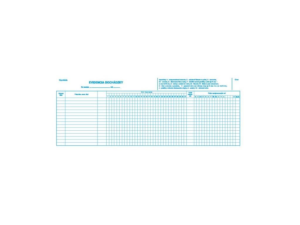 Evidencia dochádzky 42x15 cm